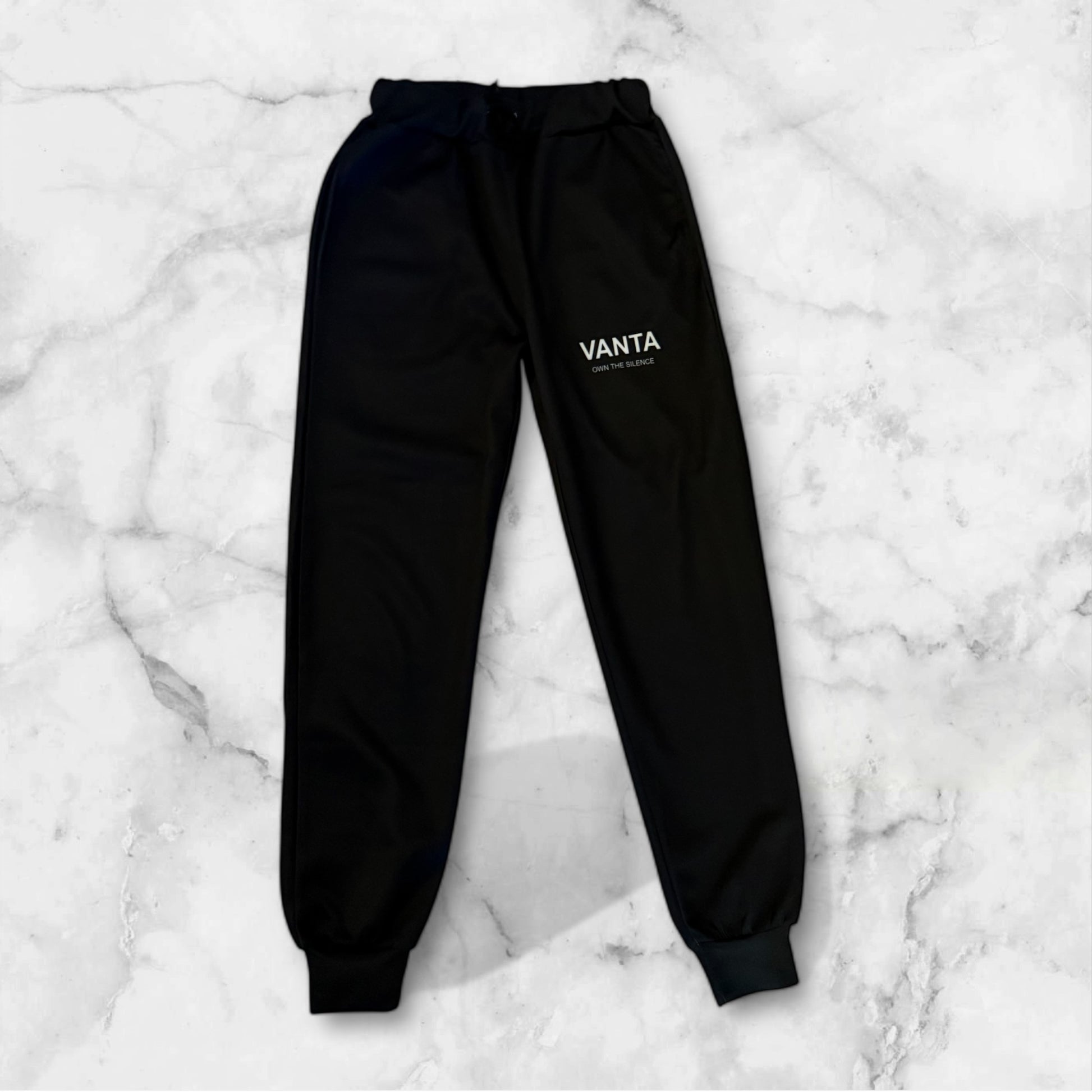 The ribbed cuffs create a sleek, tailored finish, while the subtle yet bold VANTA logo at the hip reflects a commitment to refined luxury. Designed to elevate your casual wardrobe, these sweatpants embody a perfect balance of style and craftsmanship.